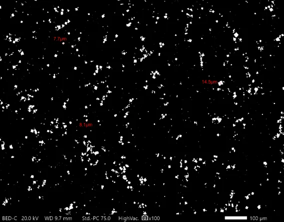 1. Through rapid - cooling casting, the product has a uniform composition. The Al3Sc particles are dispersedly distributed without agglomeration, and their size is less than 20μm.